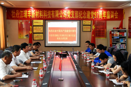 在“七一”建党97周年到来之际,6月30日上午,市委常委戴志军深入到党建联系点牡丹江瑞丰新材料有限公司讲党课,对公司全体党员、积极分子进行一次党性修养大提升的辅导。