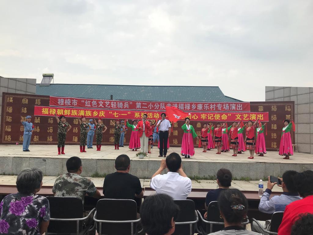 6月26日,福禄朝鲜族满族乡庆“七一”“不忘初心,牢记使命”文艺演出在康乐村文化广场隆重举行,市“红色文艺轻骑兵”第二小分队与康乐村文艺爱好者们共同呈现了一场精彩的表演。市文化馆领导、康乐驻村扶贫工作队、乡干部等观看了演出。