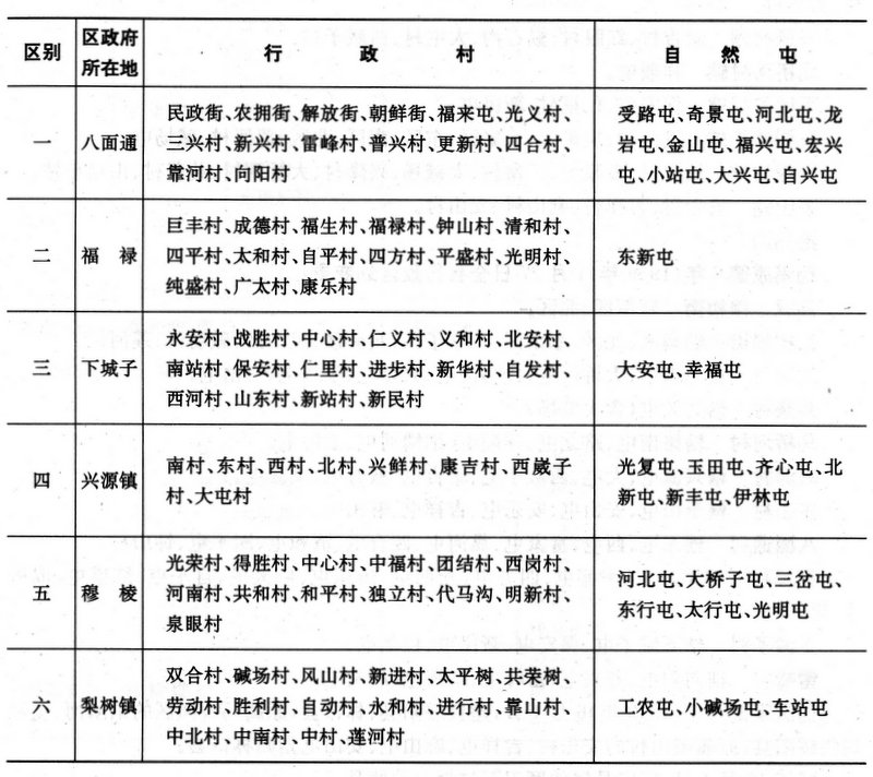 八面通镇所属生产大队:民政、民主、富家、农拥、和平、钟山、清和、太和、新城、靠河、四合、四平。